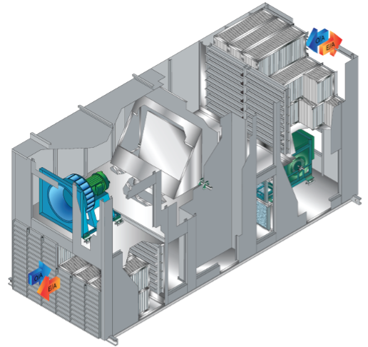 The thermal storage recovery systems utilize two separate blocks of heat storage cassettes to absorb, store and release heat from and to air streams. This proven technology provides air to air energy recovery with an effectiveness as high as 90% during the winter season and 80% during the summer season. The unit configurations are customized with options to include auxiliary heating and cooling sections.
